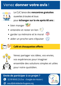 Vous souhaitez participer à ces Contactez-nous au 06.16.21.48.97 (Eva – Chargée de mission au CLIC HAUTE BRETAGNE)