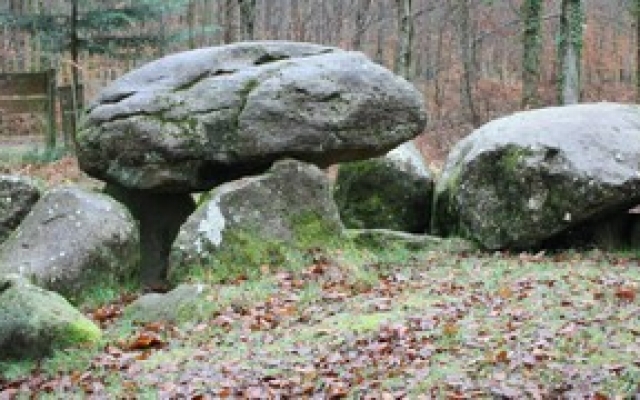 A l’origine, dix ou douze piliers soutenaient cette énorme pierre de granit qui pour sa mise en place avait dû demander des trésors d’ingéniosité et de nombreux bras fort puissants. Elle est également appelée Pierre des Huguenots.